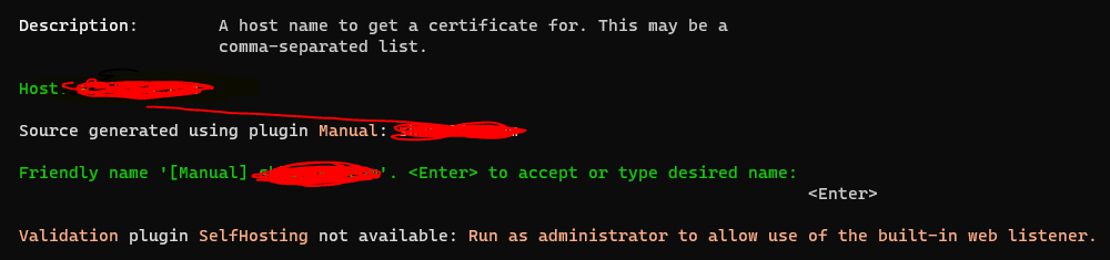 그럼 Host를 입력하라고 하는데 본인의 도메인을 입력해주면 된다. 그런 다음 Friendly.. 어쩌고 뜰텐데 <Enter>로 넘기면 끝