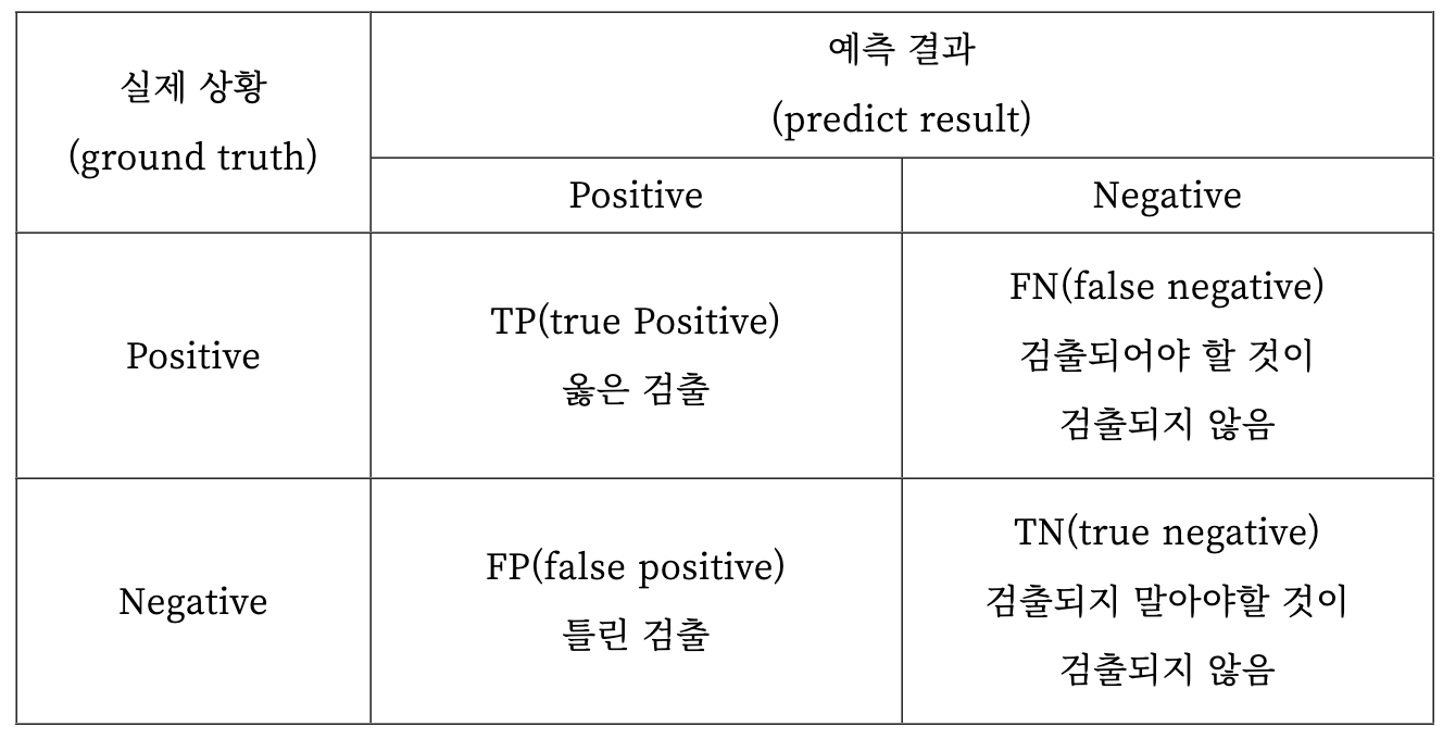 Precision은 정확도를 의미하며 검출 결과 중 올바르게 검출한 비율을 의미한다.
