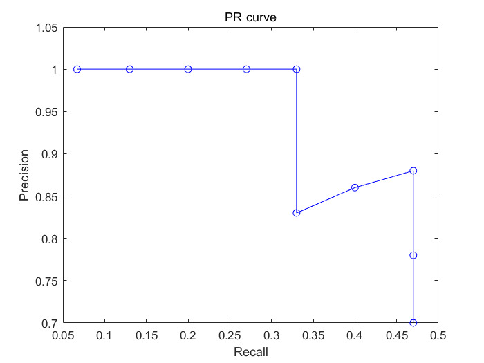 PR 곡선은 물체를 검출하는 알고리즘의 성능을 평가하는 방법 중 하나로 threshold에 따라 Precision과 Recall이 달라진다. threshold가 0.4라면 0.4보다 작으면 검출되지 않은거고 0.4 이상이면 검출된다고 판단한다.