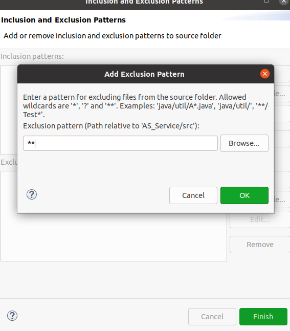 (*소스 폴더에서 제외할 파일 패턴을 지정하는 것인데 모두 제외 시킬 수 있게 **를 지정)