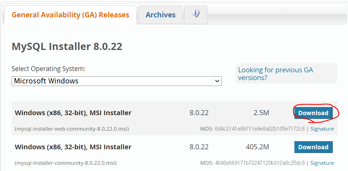 위에 링크에 접속해서 빨간색으로 밑줄 친 MySQL Community Server를 클릭한다.